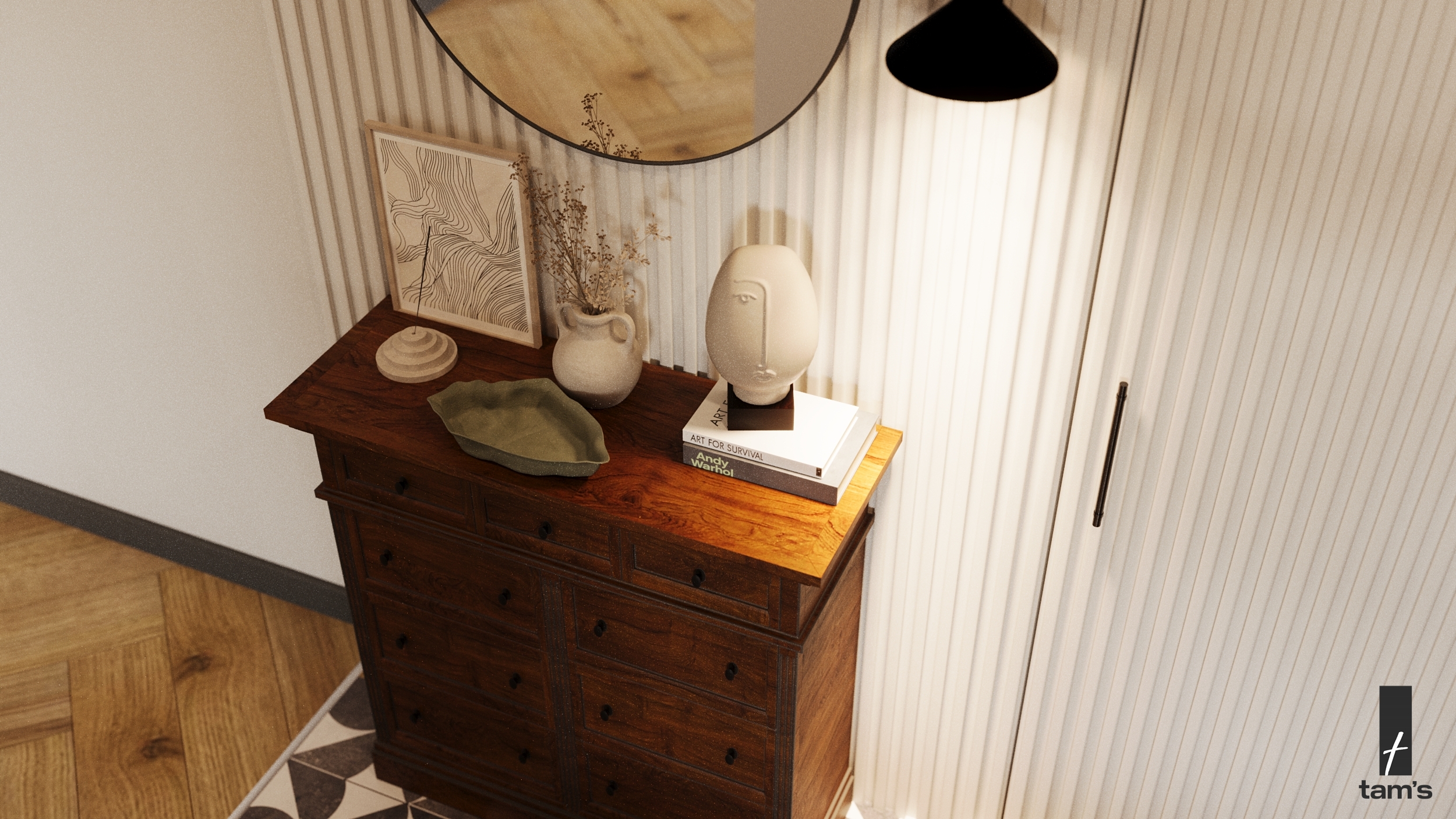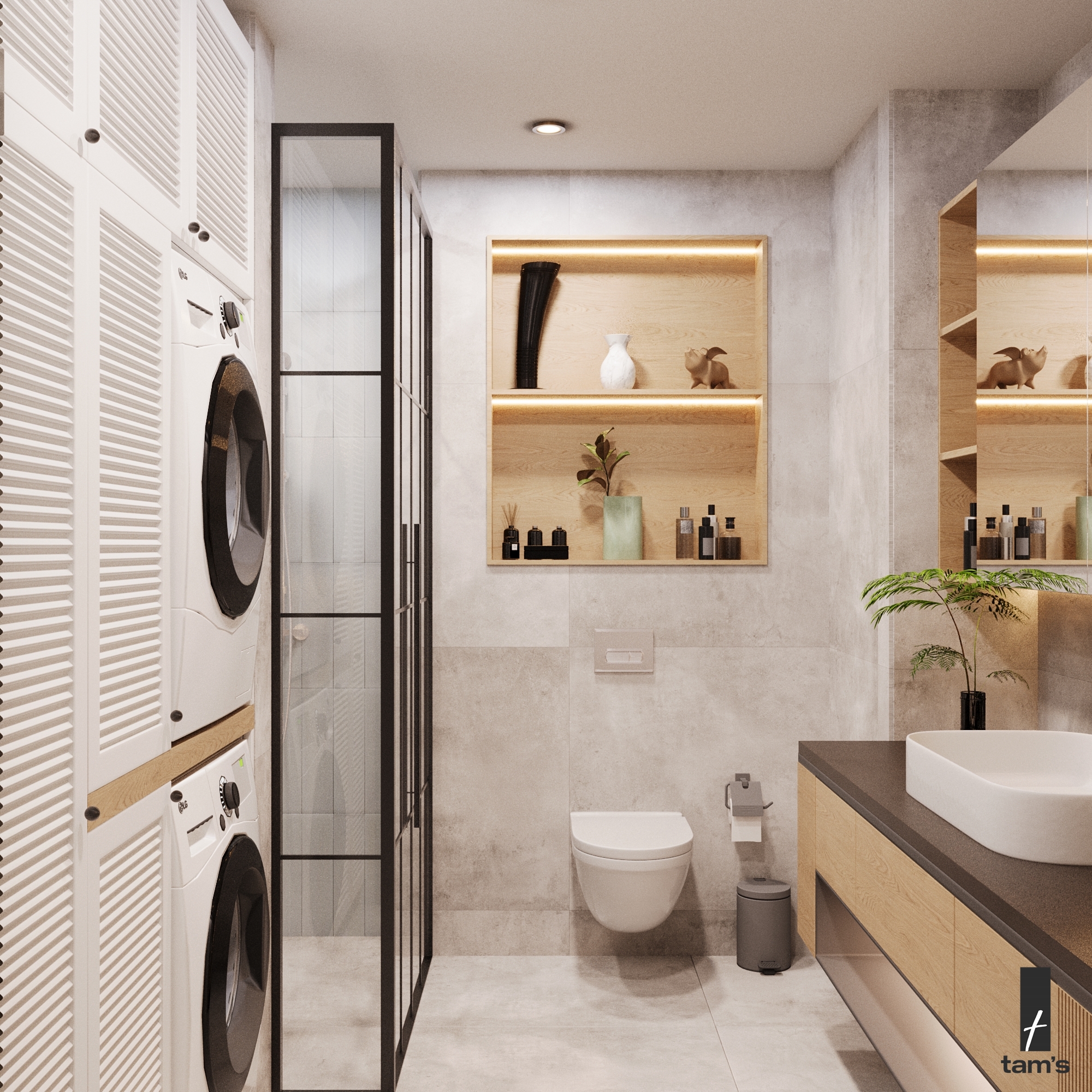 Tams Mimarlık, proje boyunca çağdaş tasarım dilini sürdürülebilirlik ile buluşturmayı amaçlamış. Kullanılan malzemeler doğal ve dayanıklı; ahşap yüzeyler, nötr tonlu seramik zeminler ve yüzey detaylarıyla mekanlar estetik bir bütünlük içinde. Duvarlarda seçilen krem-bej tonlar, mekânda ferahlık hissini desteklerken aksesuarlar ve bitkilerle mekân renklendirilmiş.