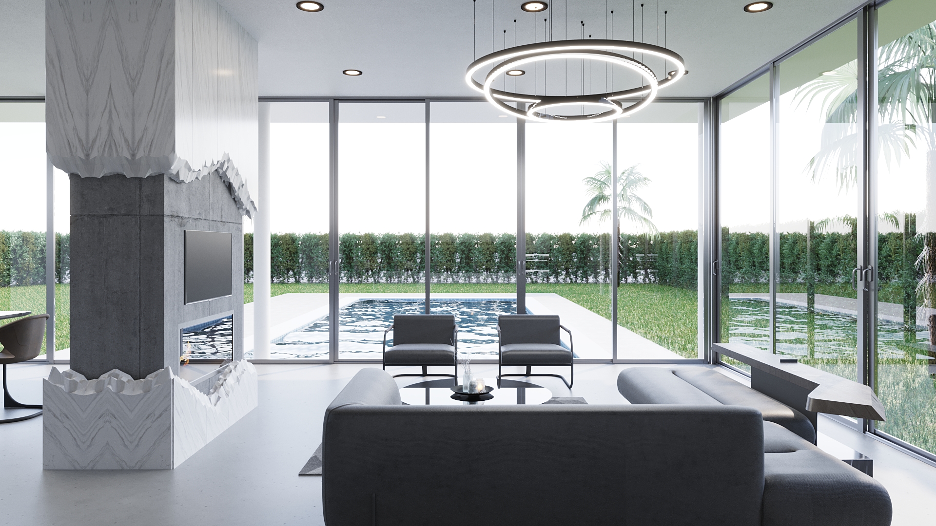Grandijr müştemilat iç mimari projesi, yalnızca fonksiyonel değil aynı zamanda estetik olarak da çevresiyle uyumlu olacak şekilde tasarlanmıştır. Bahçe içerisindeki bu yapı, doğayla bütünleşen yatay mimarinin başarısını sergiler. Yatay mimari, yapının çevresine yayılmasını ve doğayla temasının kesintisiz devam etmesini sağlar. Bu yaklaşım, modern yaşamda artan açık hava kullanımına ve doğa ile bağ kurma ihtiyacına güçlü bir yanıt niteliğindedir.